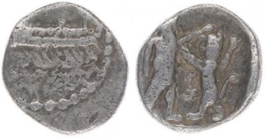 AR 1/8 Šekelu, galéra / stojící muž zprava, stojící lev zleva 9 mm, 0.71 g, SGI.5940_R!