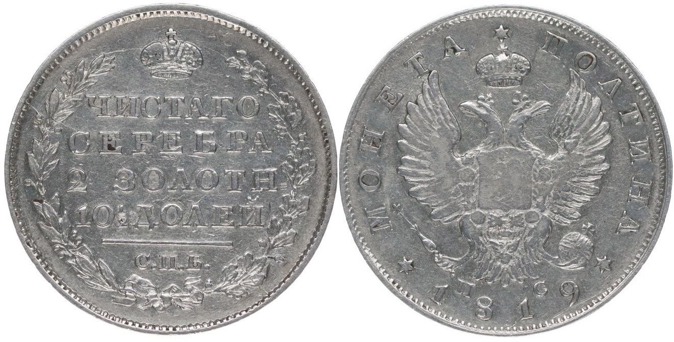 Poltina 1819, SPB-PC, Cr.129, Uzd.1409 skup.XVII-B/b