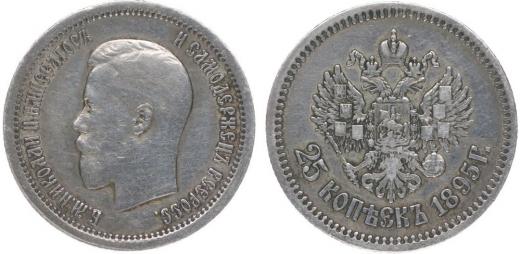 25 Kopějek 1895, Y.57, Uzd.2026 skup.XXI-A/a