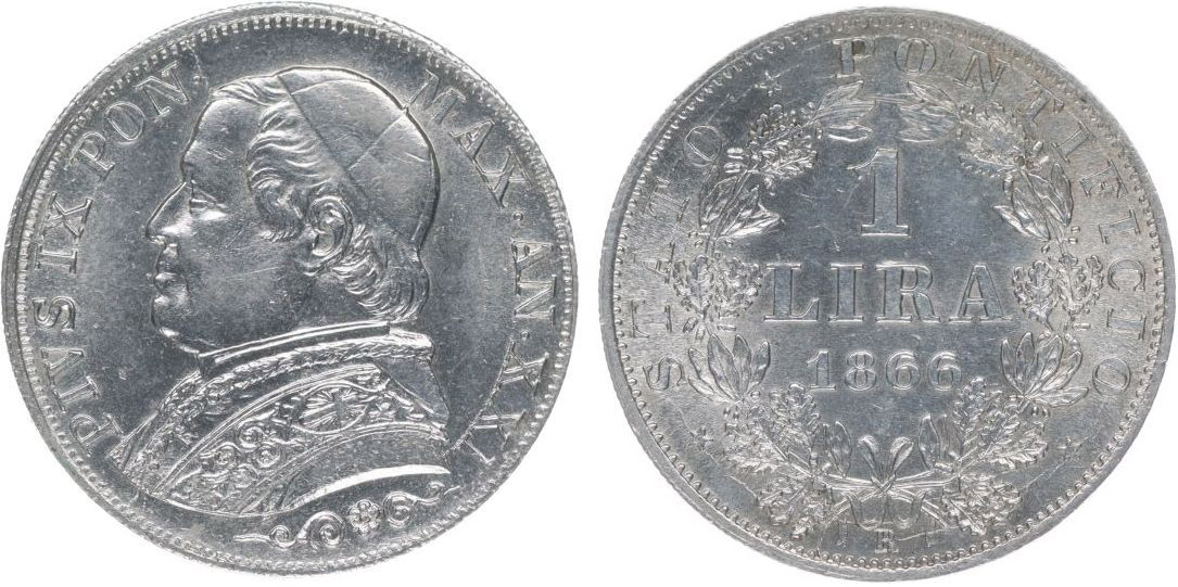 1 Lira 1866 R - 21.rok pontifikátu, Cr.188b