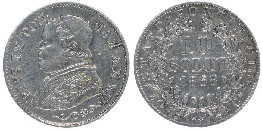 10 Soldi 1868 R - 23.rok pontifikátu, Cr.187