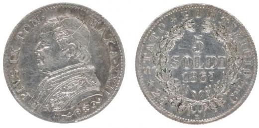 5 Soldi 1867 R - 22.rok pontifikátu, Cr.186