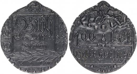 400 let Bible kralické 1579 - 1979 Detail titulního listu, vročení / motiv titulního listu čtvrtého dílu bible, vročení, Sign., 90x98 mm_R!