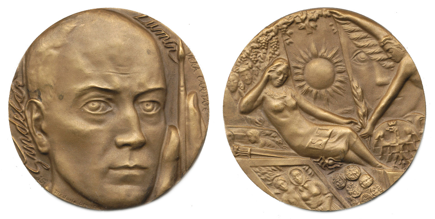 Medaile k 60.narozeninám autora - 1925 - 1985 Portrét čelně, famsimile podpisu / sedící múza s otevřenou knihou, Sign.LŠ, Tombak 60 mm