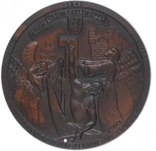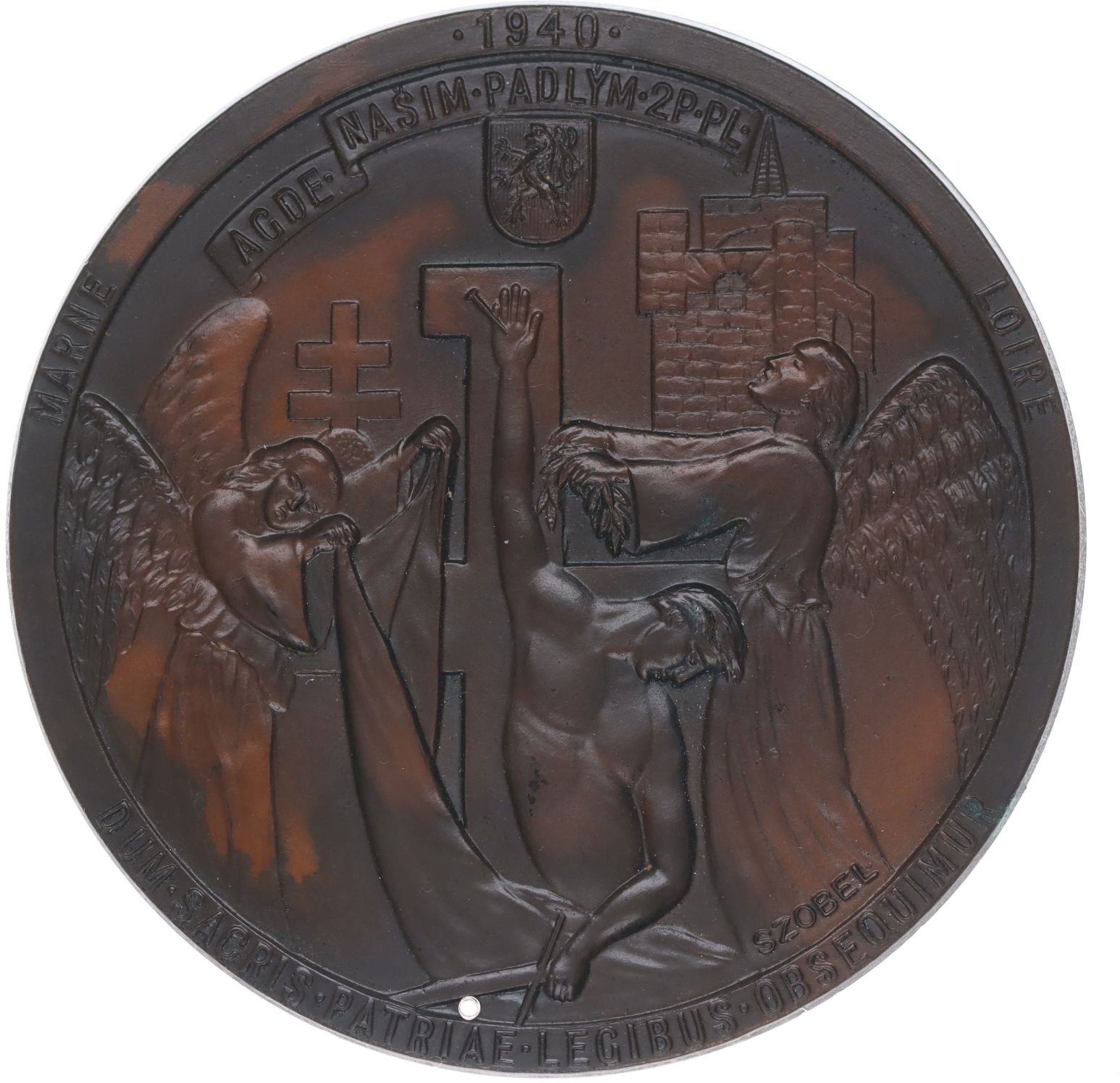 Medaile 2.pěšího pluku - Našim padlým 1940 v bojích u Marne, Agde a Loire, Bronz 65 mm, 58,51 g, výroba Miller Birmingham _dole malá původní dírka jednostr. R!