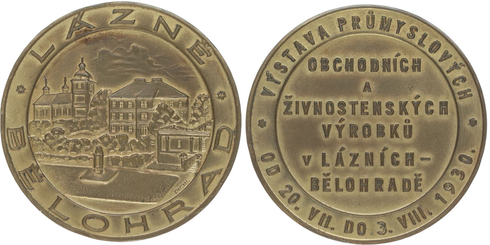Výstava průmyslových, obchodních a živnostenských výrobků od 20.VII. do 3.VIII.1930, pohled na město, opis / 6řádk.nápis, opis Sign.Pichl, Pozlac.bronz 40 mm, 39,32 g