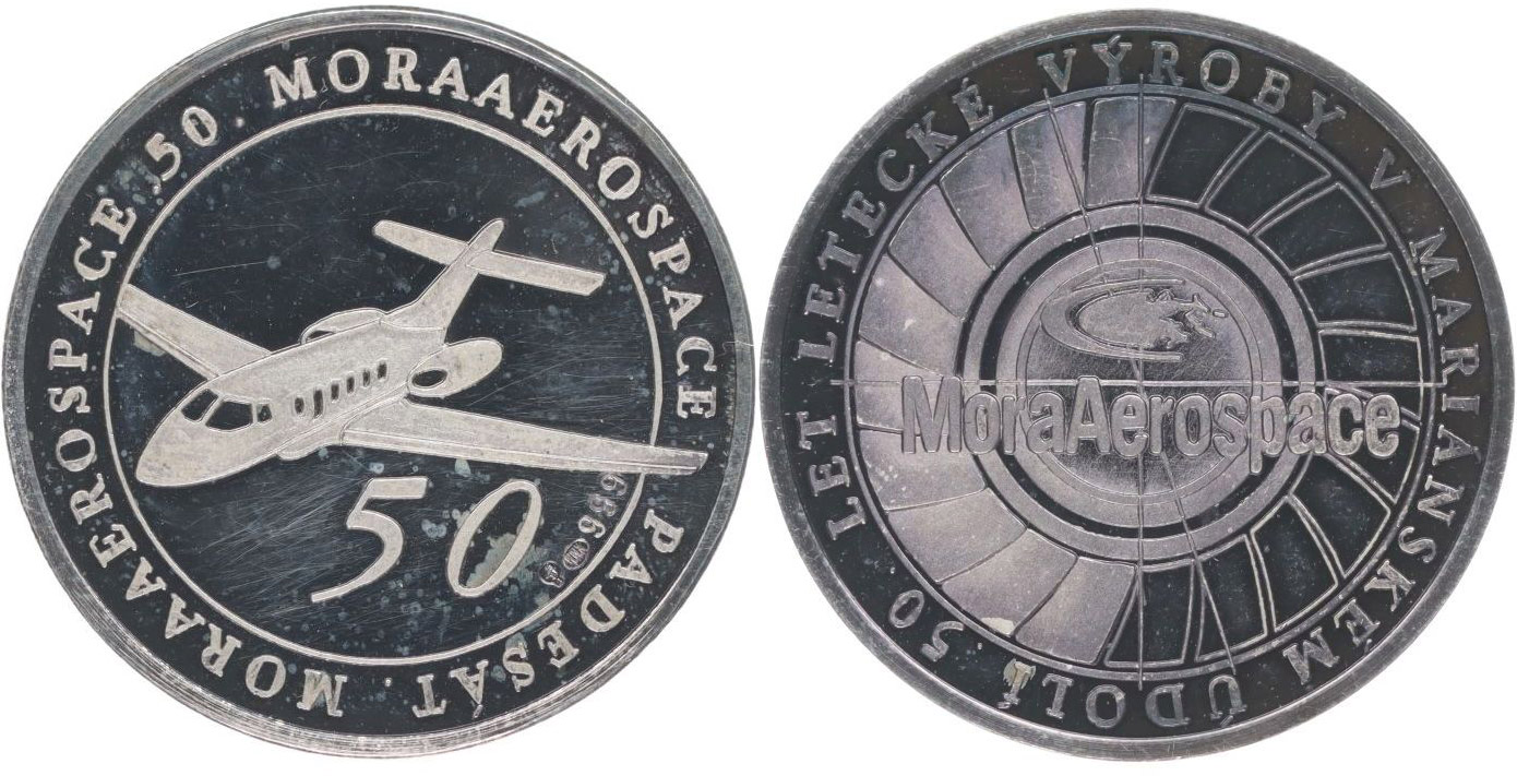 50 let letecké výroby - Moraaerospace, b.l. (1951 - 2001) Letadlo "50", opis / znak, opis, Punc.999, Ag 30 mm, 11 g_certifikát