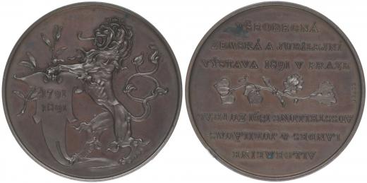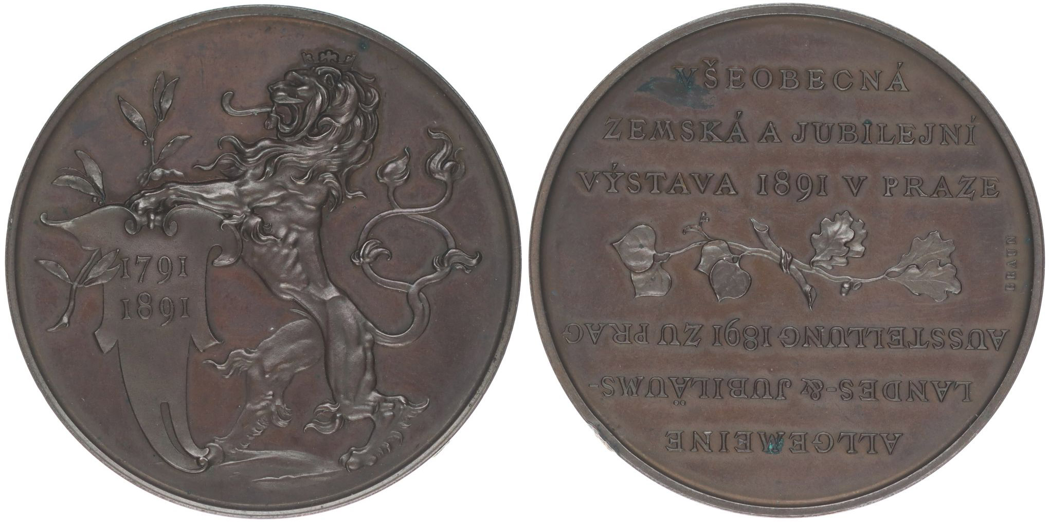 Braun - Záslužná medaile pro vystavovatele#Br Český lev s praporcem / Lipová a dubová ratolest, český a německý nápis, Sign., Bronz 44 mm, 40,9 g, ŠFP.17c