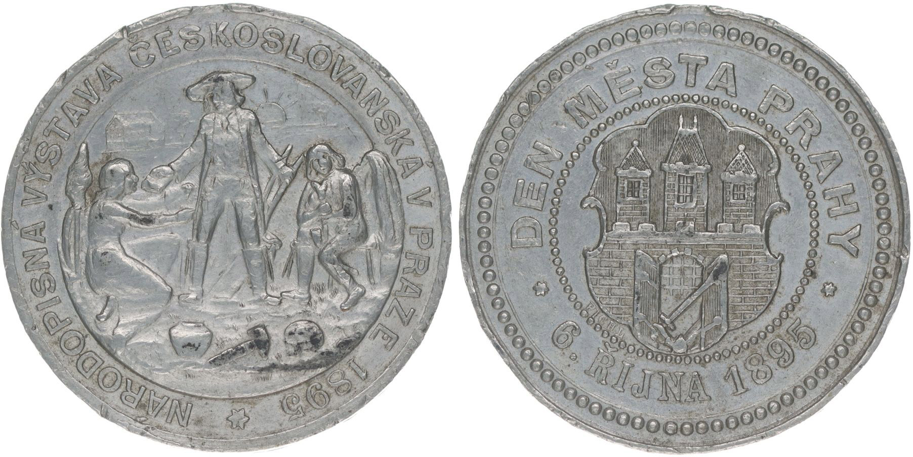 Pichl - den města Prahy - 6.října 1895 Tři postavy odpočívající na poli / znak města Prahy, opis Sign., Sn 39 mm, 22,28 g_dr.hry, odstr.ouško