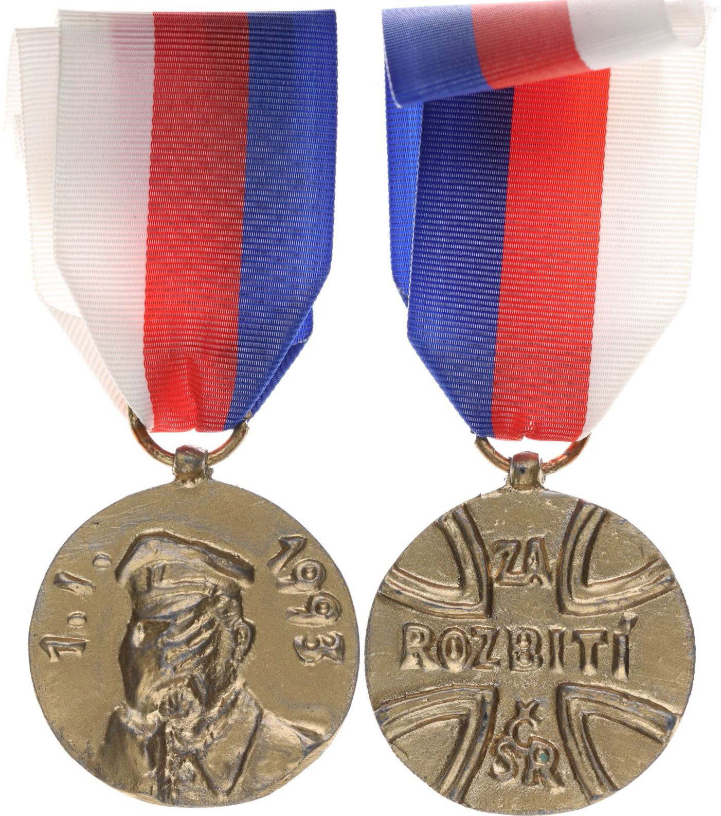 Dušek - na rozpad státu 1.1.1993 Portrét TGM, datum, česká verze Sign., Sn kompozice zlacená 36 mm, Nov.01.223a_orig.stuha