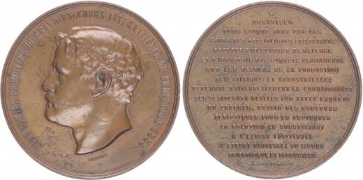 Brusel - mezinárodní výstava 1888 - Leon Somzee - promotér výstavy, portrét zleva, opis / 15řádk.francouzský nápis Sign.Daxber, Bronz 70 mm_dr.ďubky v av.