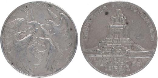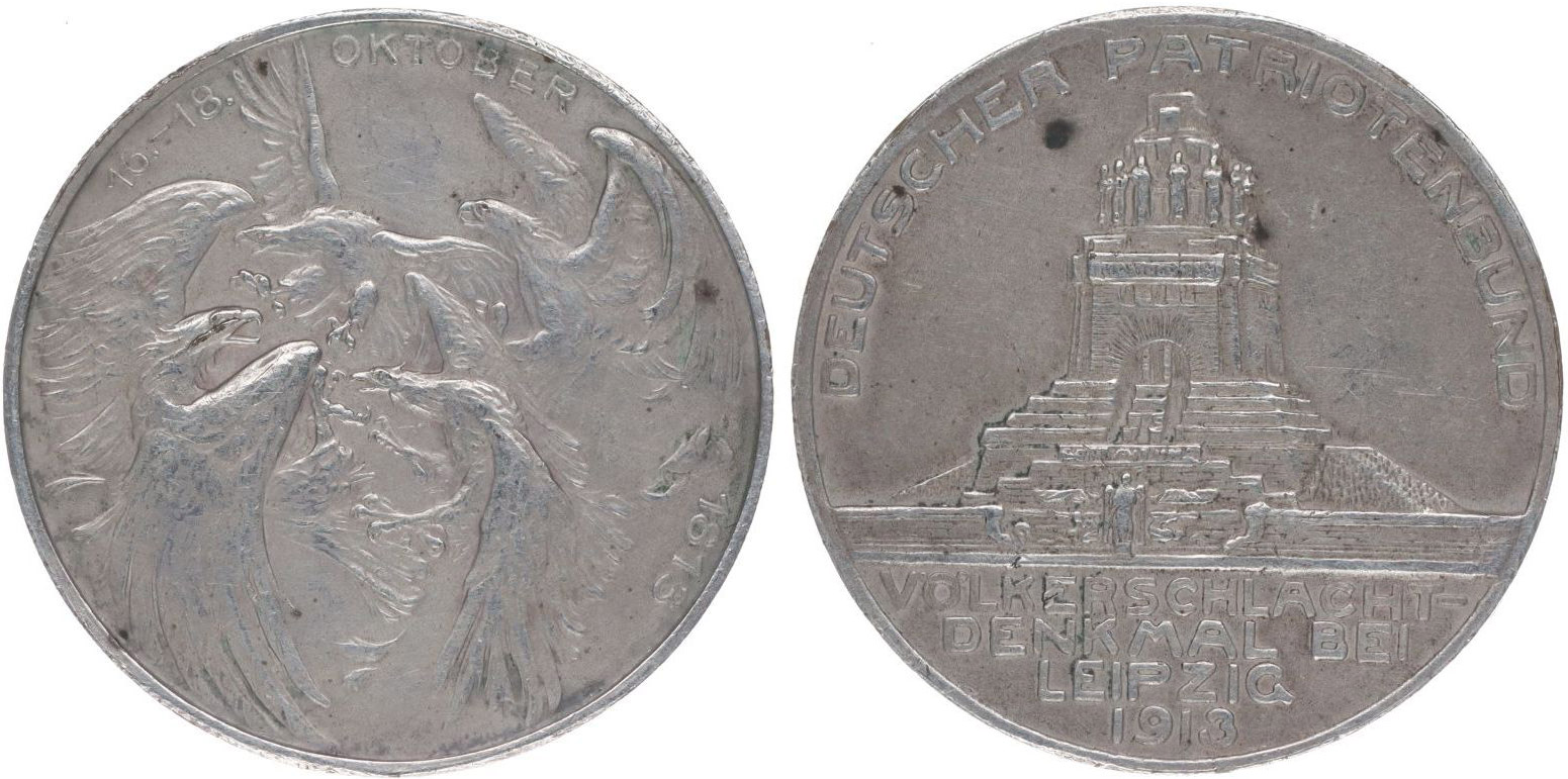 Nesign. - k 100.výročí btivy u Lipska 16.-18.10.1813 - 1913 Bojující orli, opis / památník u Lipska - opis spolek německých patriotů, 3řádk.nápis, Ag 33 mm, 17,12 g