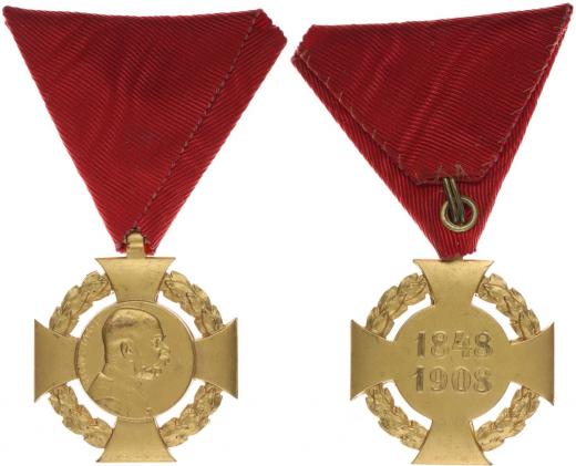 Jubilejní kříž 1908 - pro civilní osoby, VM.1/37b _orig.červená stuha