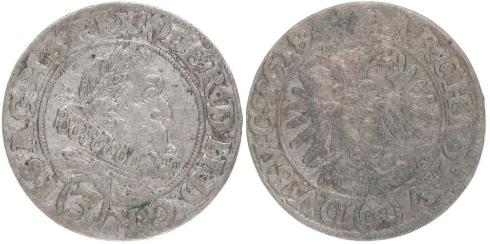 3 Krejcar 1628, Vratislav-Riedel+Ziesler, MKČ.1019a, Her.1284a av.: široký límec, rev.: nízká široká koruna_R!