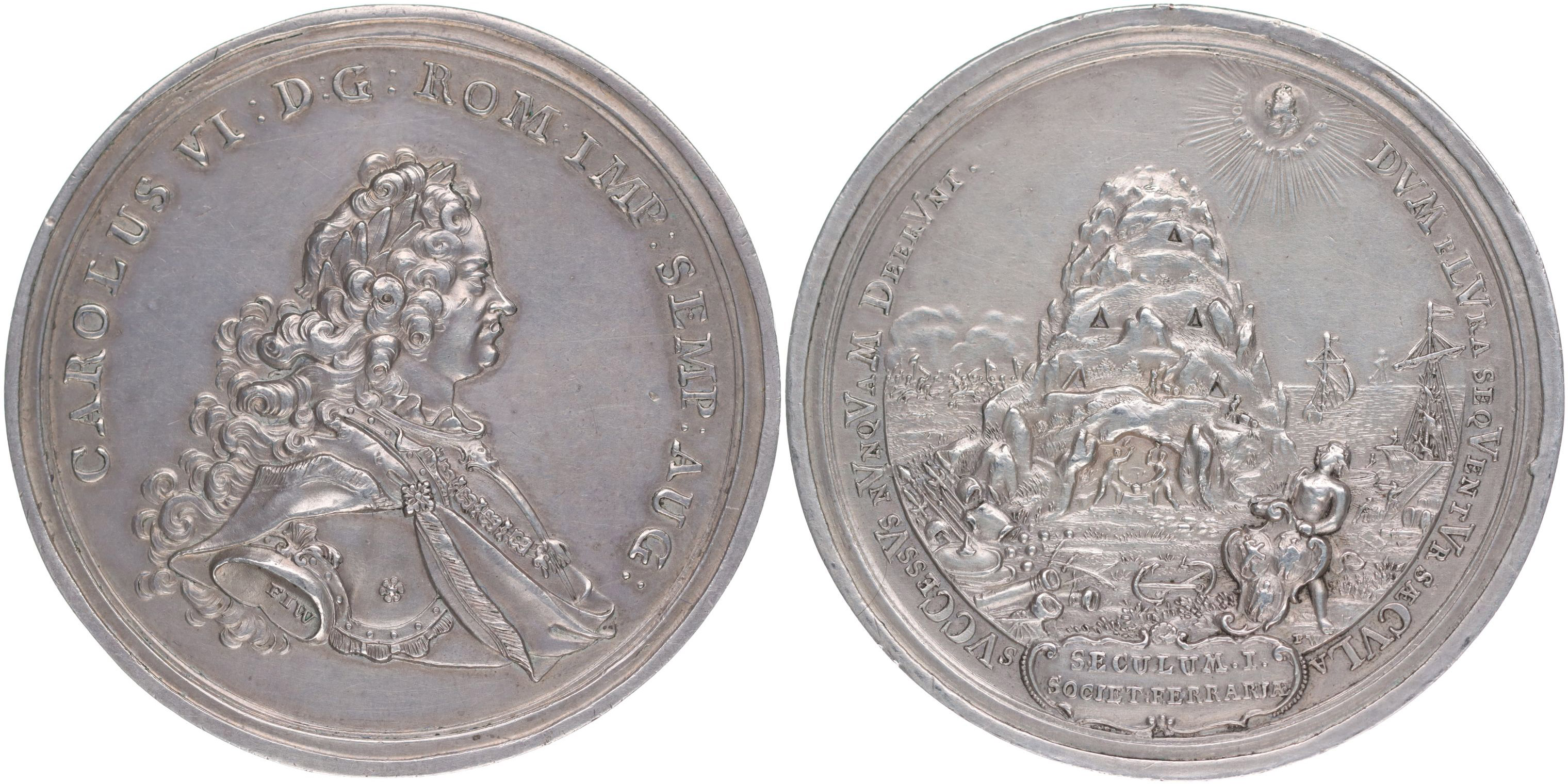 F.I.Wurschbauer, P.P.Werner - Innerberg - medaile na důlní spolek Portrét zprava, opis / pohled na důlní závod, 2řádk.nápis, opis 1725 (letopočet chronogramem), LG.XV/864, We.-, Mont.-, Ho.2625 66 mm, 106,17 g_RR!