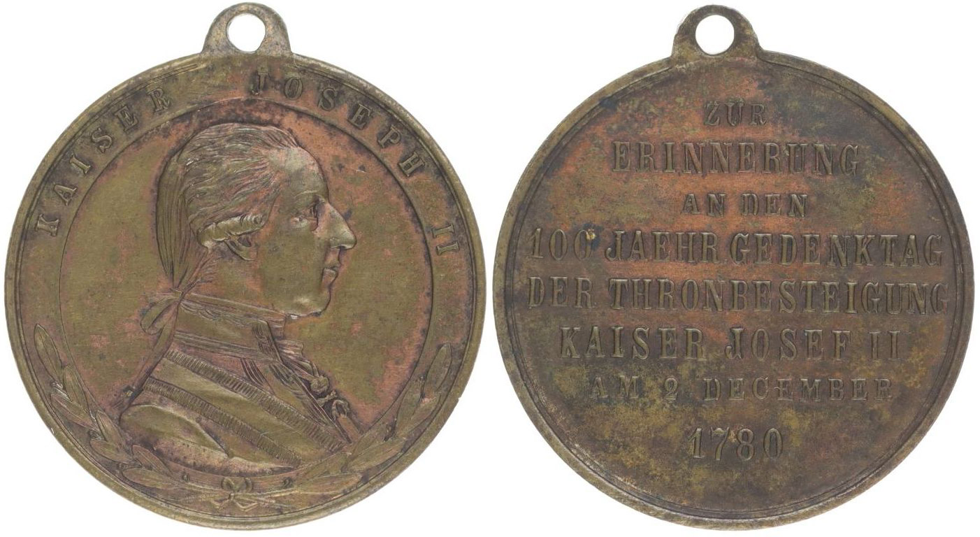 Nesign. - medaile k 100.výročí nástupu na trůn 29.11.1780 - 1880 Poprsí zprava, opis / 8řádk.nápis, Bronz 30 mm, 9,00 g _orig.raž.ouško