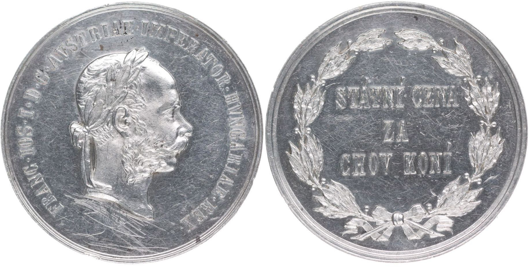 Nesign. - státní cena za chov koní, b.l. Hlava zprava, latinský opis / 3řádk.český nápis, Nepunc., Ag 40 mm, 16,01 g_dr.rysky v av., dr.hr.v av. R!