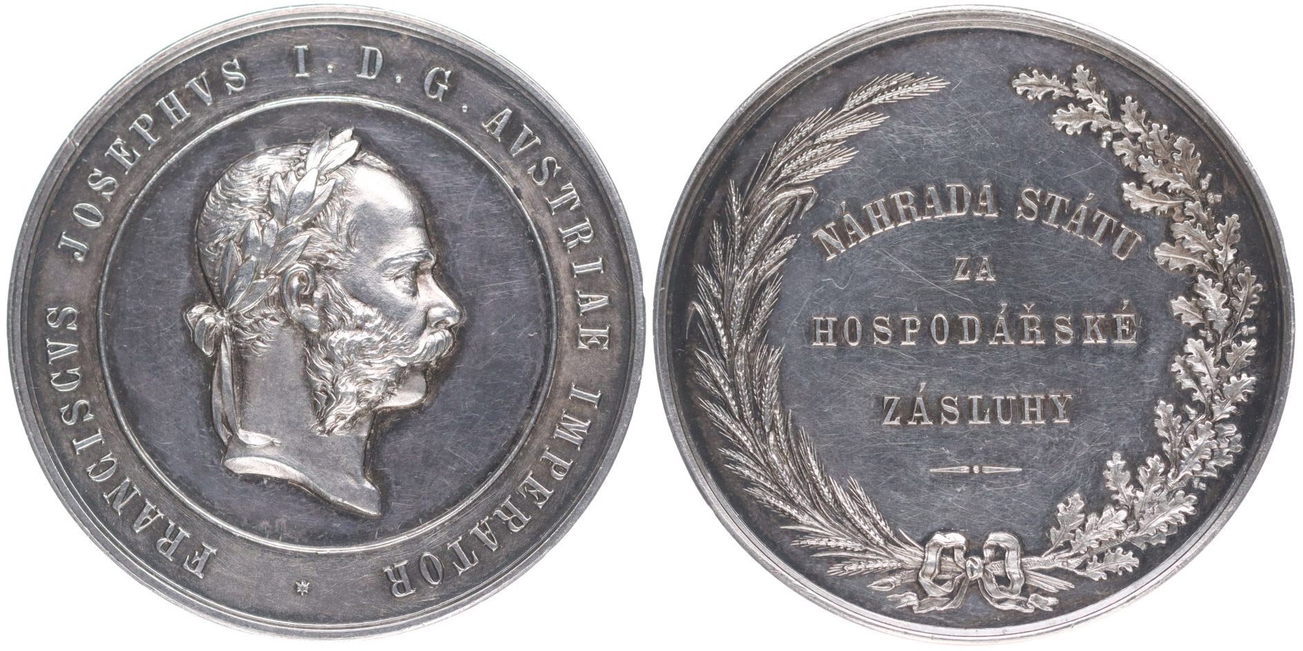 Nesign. - Náhrada státu za hospodářské zásluhy b.l.#Ag Poprsí zprava, opis / 4řádkový český nápis, Ag 40 mm, 35,02 g