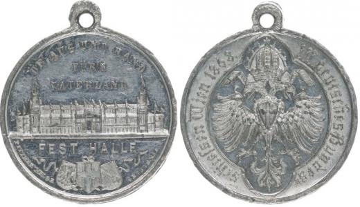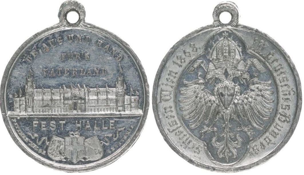 Vídeň - 3.německé spolkové střelby 1868 Pohled na střelnici, nápis FEST HALLE, opis / korunovaný rakouský orel, Sign.O.Pittner Brittania, Sn 22 mm, 3,91 g_orig.ouško