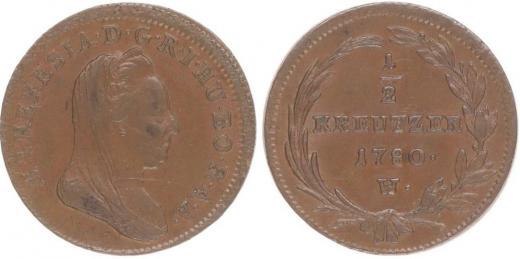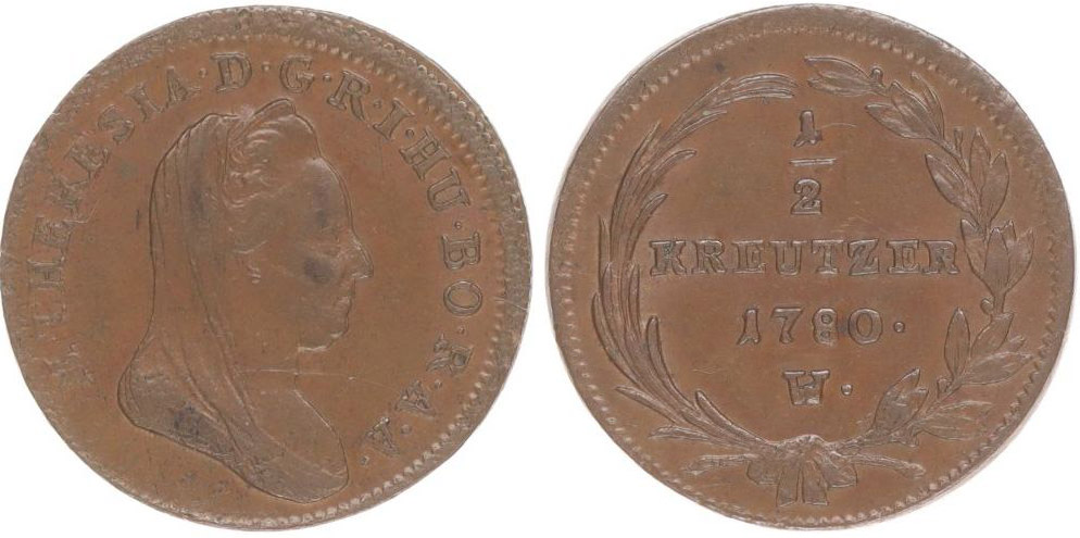 Cu 1/2 Krejcar 1780 W, Vídeň, N.61b, Novot.13, Her.1633