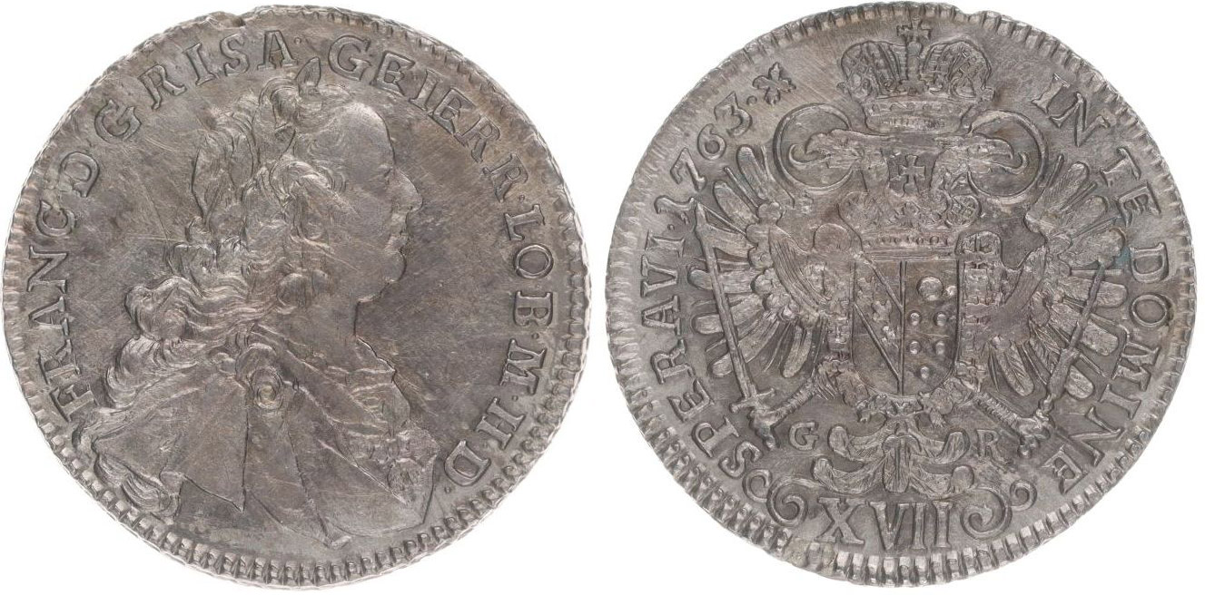 XVII Krejcar 1763 G-R, Graz, N.9_dr.v.stř. na hr.