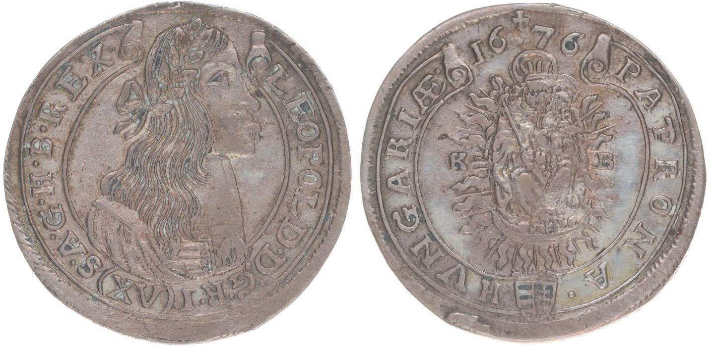 XV Krejcar 1676 KB, Nech.1157, Höl.76.1.2a, Hus.1423 var. v rozložení paprsků a mincovní značce_R!