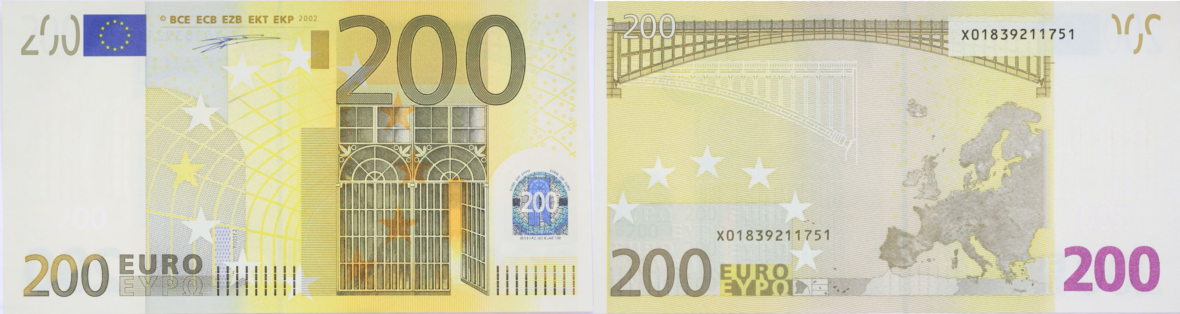 200 Euro 2002, sérX, podpis Willema F.Duisenberga R005 tiskárna Giesecke a Devrient Německo, Pi.6x