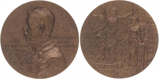 Emil Grohmann - Vrbno pod Pradědem - medaile na 100 let firmy, 1900#Br Poprsí zleva, nápisy / žena a dvě děti u tkalcovského stavu, za oknem továrna, nápis, Sign., Bronz 50 mm