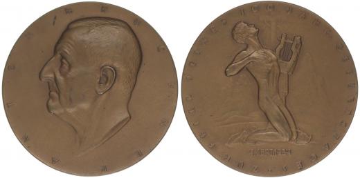 A.Hartig - Anton Bruckner - medaile k 100.výr.narození 1824 - 1924 Portrét zleva, opis / klečící mužská postava, opis, Sign., Bronz 60 mm