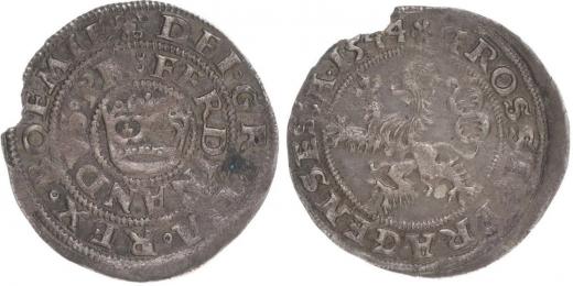 Pražský groš 1544 Praha-Sauermann, J.4b, Chv.1/aK_dr.vyl.okraj R!