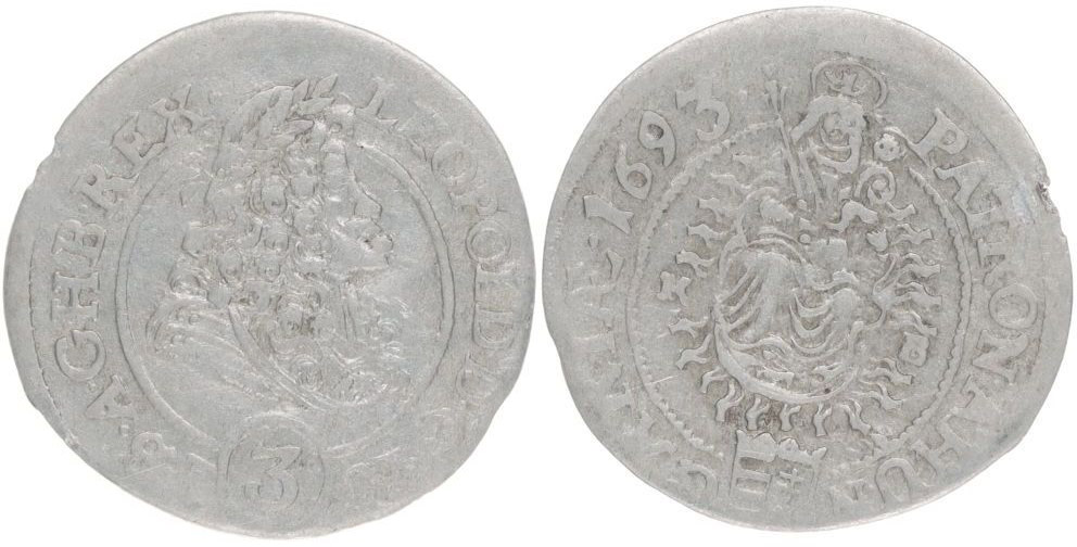 3 Krejcar 1693 KB, Nech.1234, Husz.1466, Her.1605