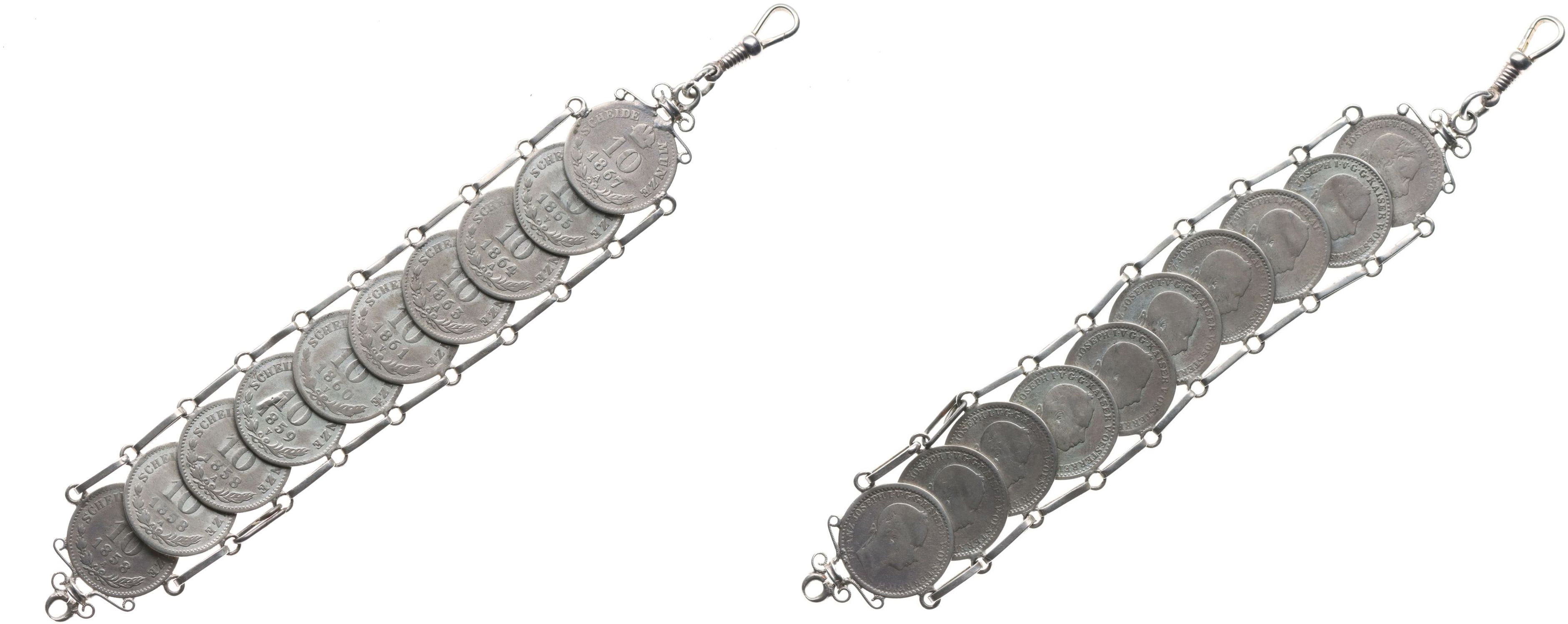 10 Krejcar 1858 A - 3x, 1859 V, 1860 V, 1861 V, 1863 A, 1865 V, 1867 A R! - připevněno na společném Ag řetízku_celk.10 ks
