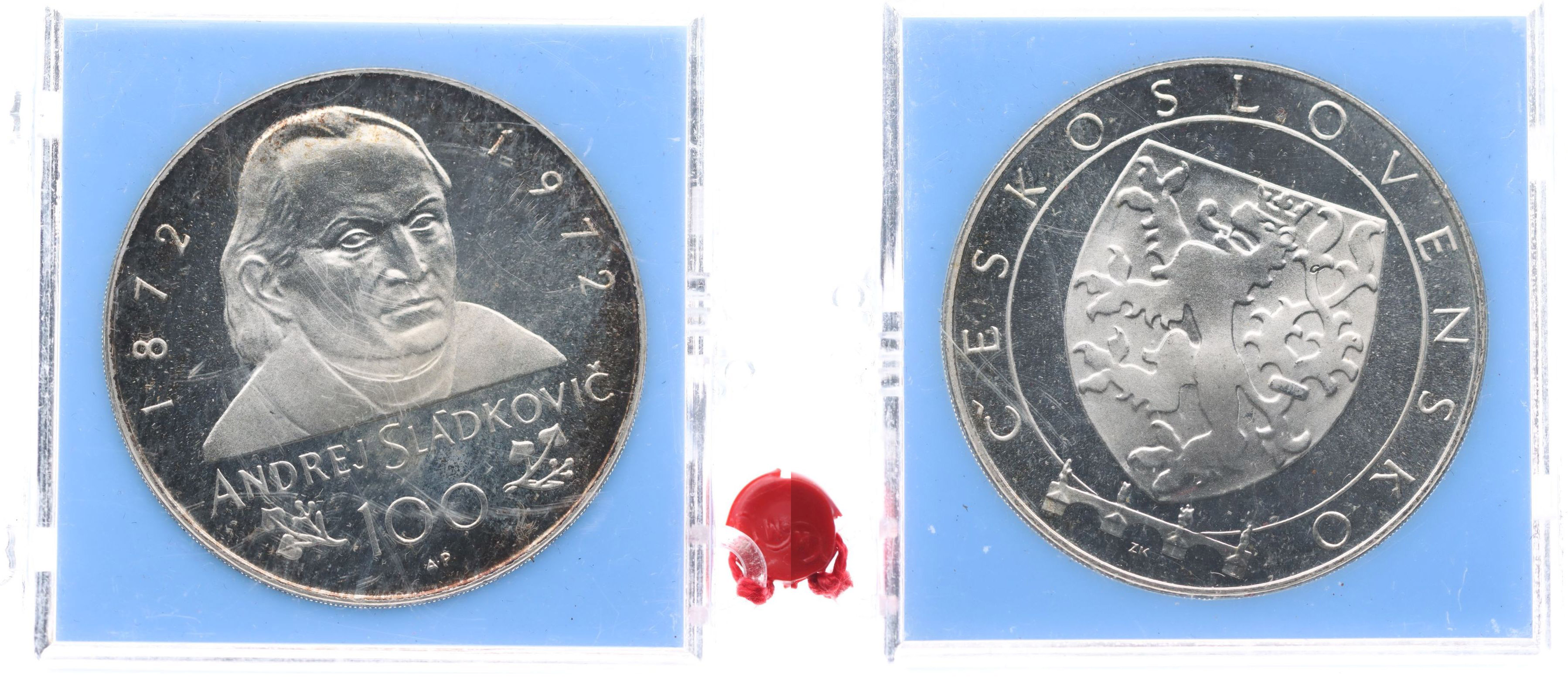 100 Kčs 1972 - Sládkovič (zkušební ražba), 39 mm, 24.9 g Sign.AP/ZK, Andrej Peter, Zdeněk Kolářský)_orig.etue s pečetí