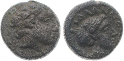 AE 16 mm, hlava mladého muže zprava / hlava nymfy Phalanny zprava, SG.2180, BMC.4