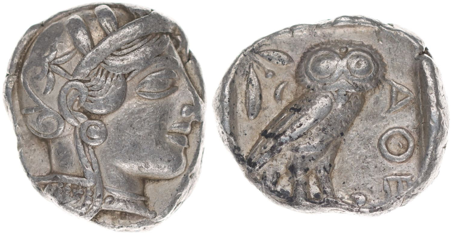 AR Tetradrachma, Hlava Atény doprava / sova doprava, olivová snítka, nápis, SG.2521