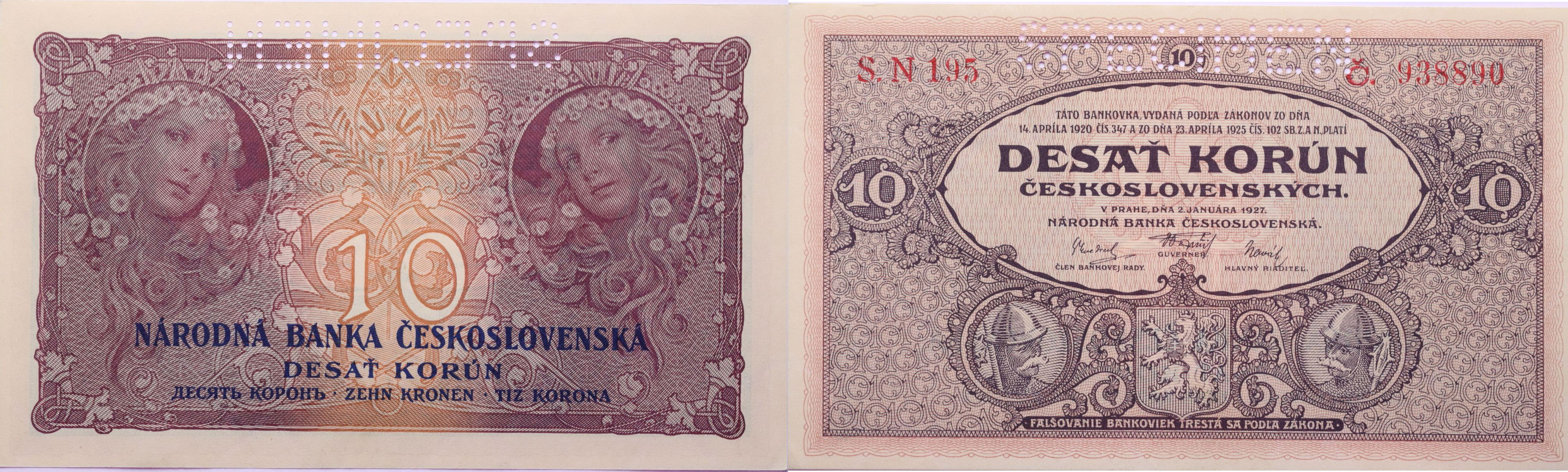 10 Kč 1927, série N195, B.22e, Hejz.22bS1_"SPECIMEN"