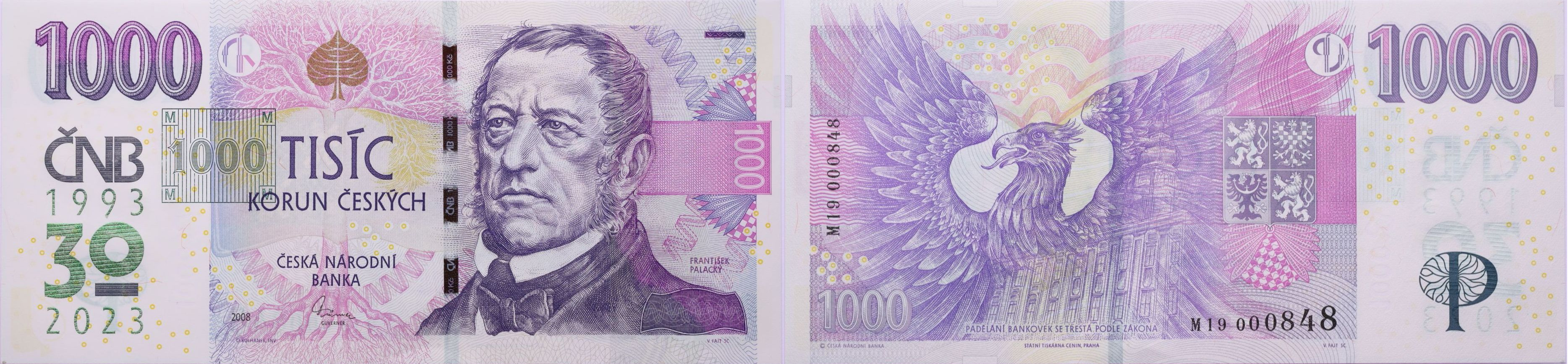 1000 Kč 2008, sér.M19 s přítiskem ČNS - 30 let 1993 - 2023