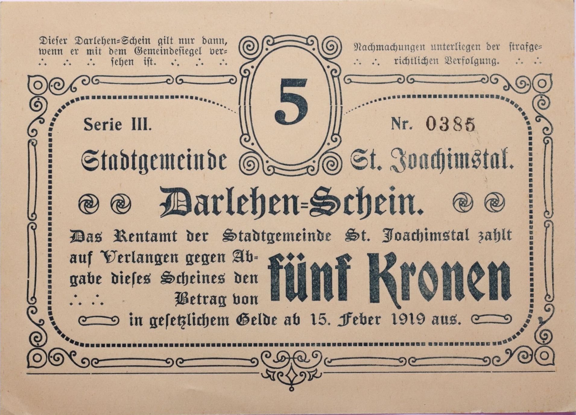 Jáchymov (St.Joachimsthal) město - 5 K. b.l. (1919), sér.III, č.0385 DH.183.1.3a
