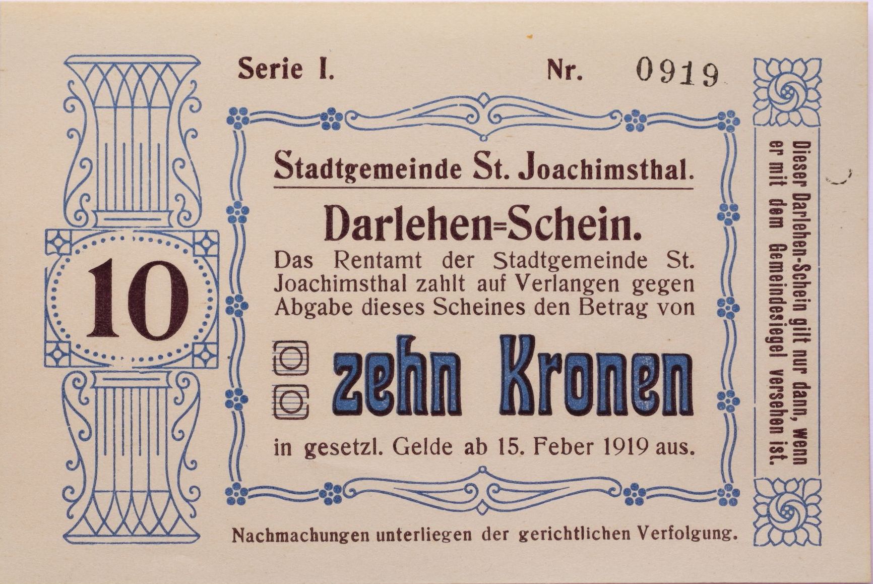 Jáchymov (St.Joachimsthal) město - 10 K. b.l. (1919), sér.I, č.0919 DH.183.1.4