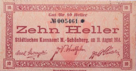 Šumperk (M.Schönberg) město, 10 Haléř 10.8.1914, č.005461, DH.120.1.1a