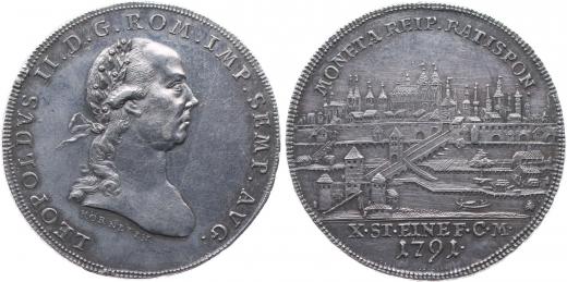 Tolar 1791 - s titulem Leopolda II., pohled na město, KM.465, KMG.53, Dav.2630_R!