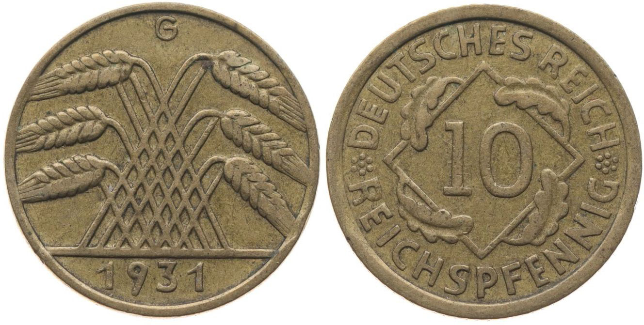10 Reichspfennig 1931 G, KM.40, J.317_RR!