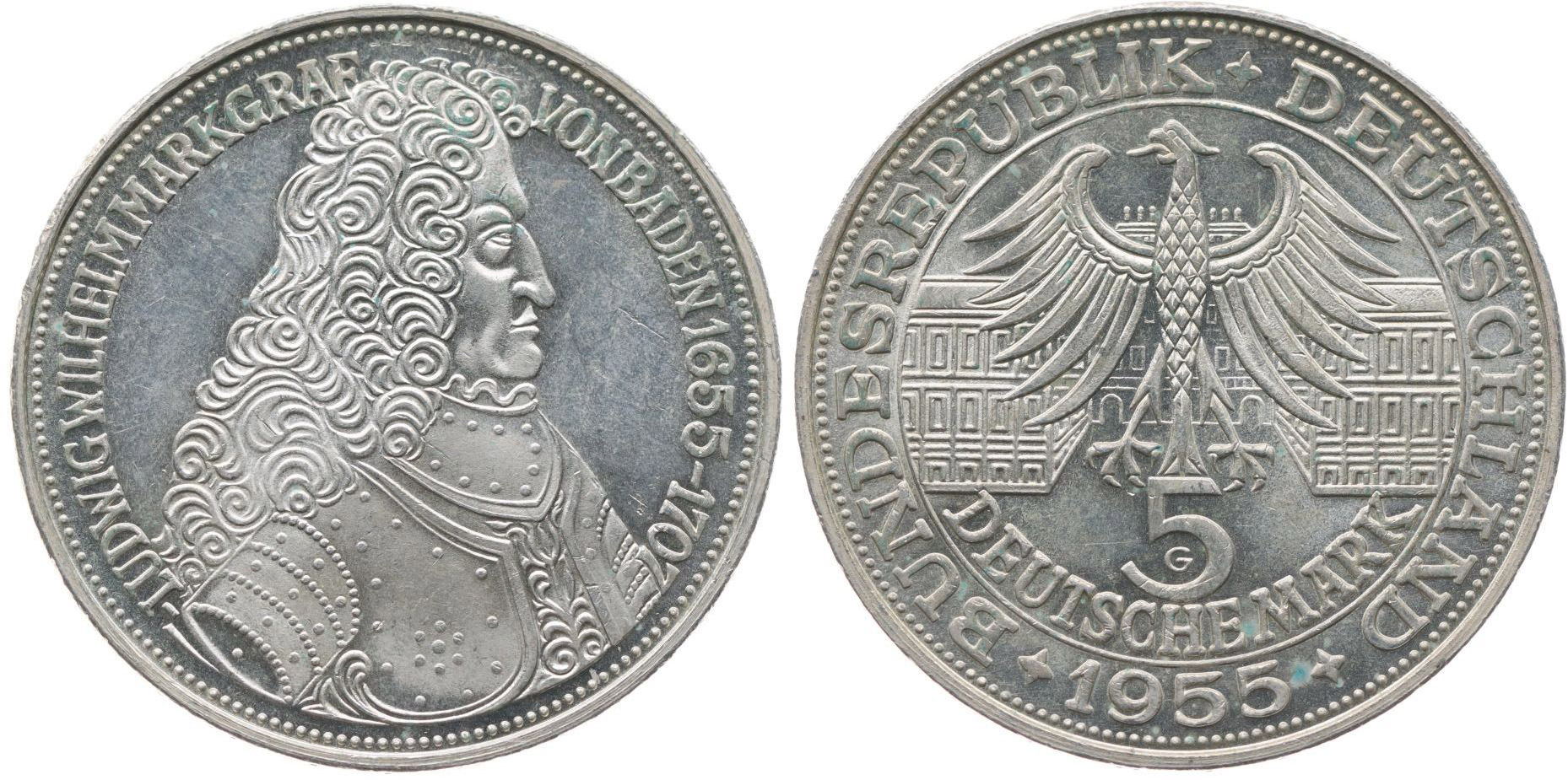 5 Marka 1955 G, Ludwig v.Baden, KM.115, J.390
