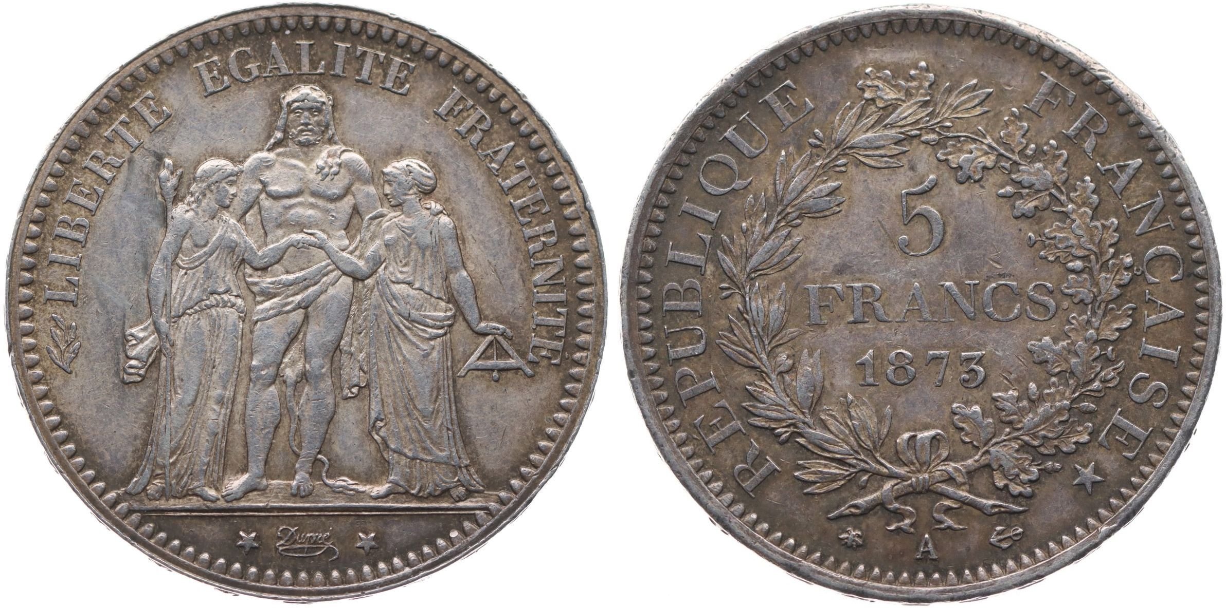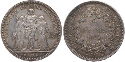 5 Frank 1873 A, Y.52.1, KM.820.1