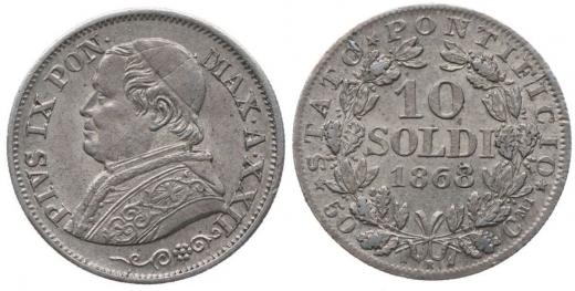 10 Soldi 1868 R - 22.rok pontifikátu, Cr.187
