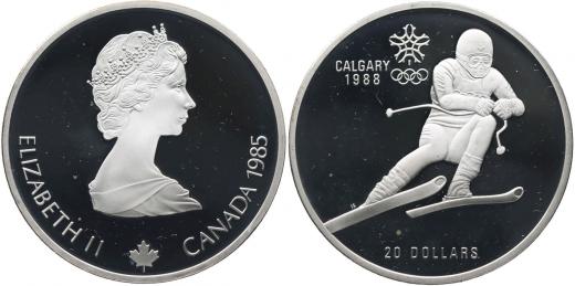 20 Dolar 1985 - Calgary 1988 / sjezdové lyžování, KM.145_orig.kapsle