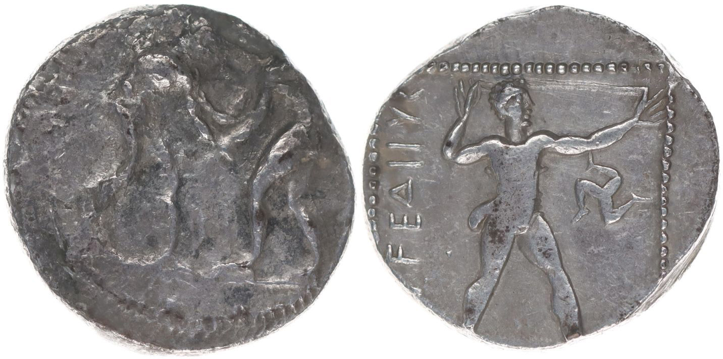 AR Statér, Dva nazí zápasníci / kráčející muž s prakem zprava nápis, SG.5390