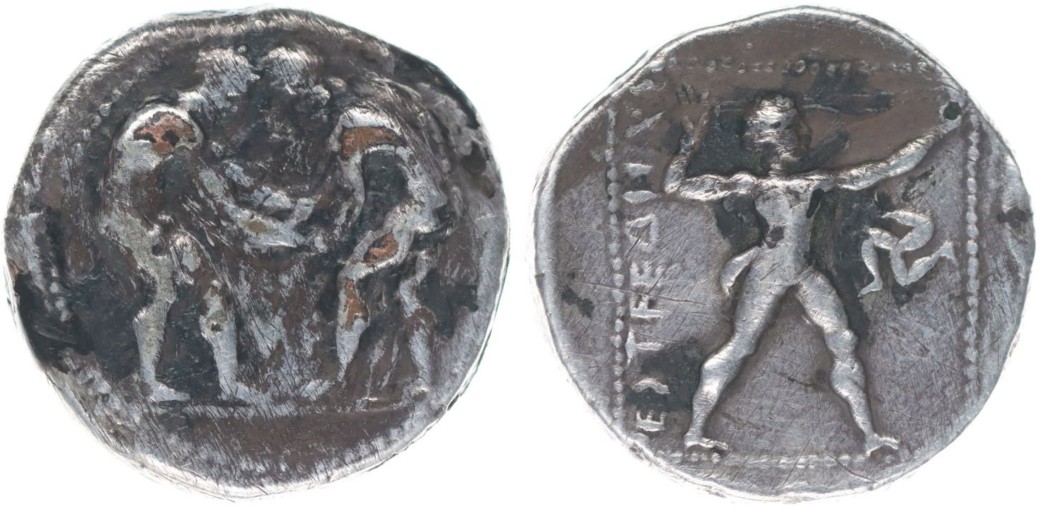 AR Statér, Dva nazí zápasníci / kráčející muž s prakem zprava nápis, SG.5396