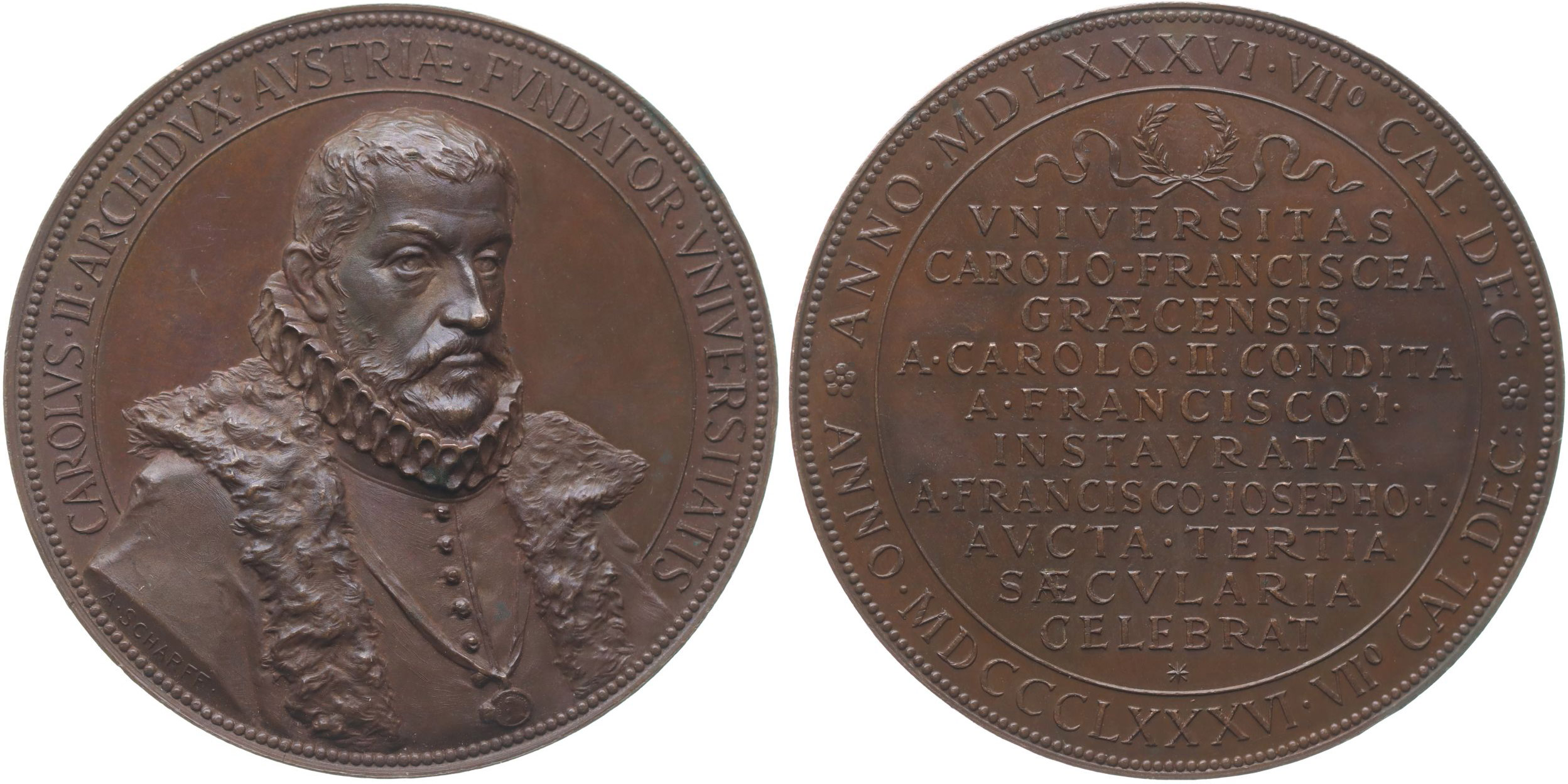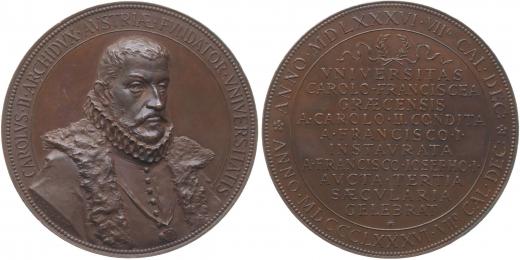 Arc. Karel Štýrský - slavnost k 300.výr.university v Grazu, 1886 Poprsí mírně zprava, opis / 10řádk. nápis, stužka a opis, Sign., Bronz 54 mm, 68,67 g, Loehr.127, Serf.4, Haus.1721, Wu.4443