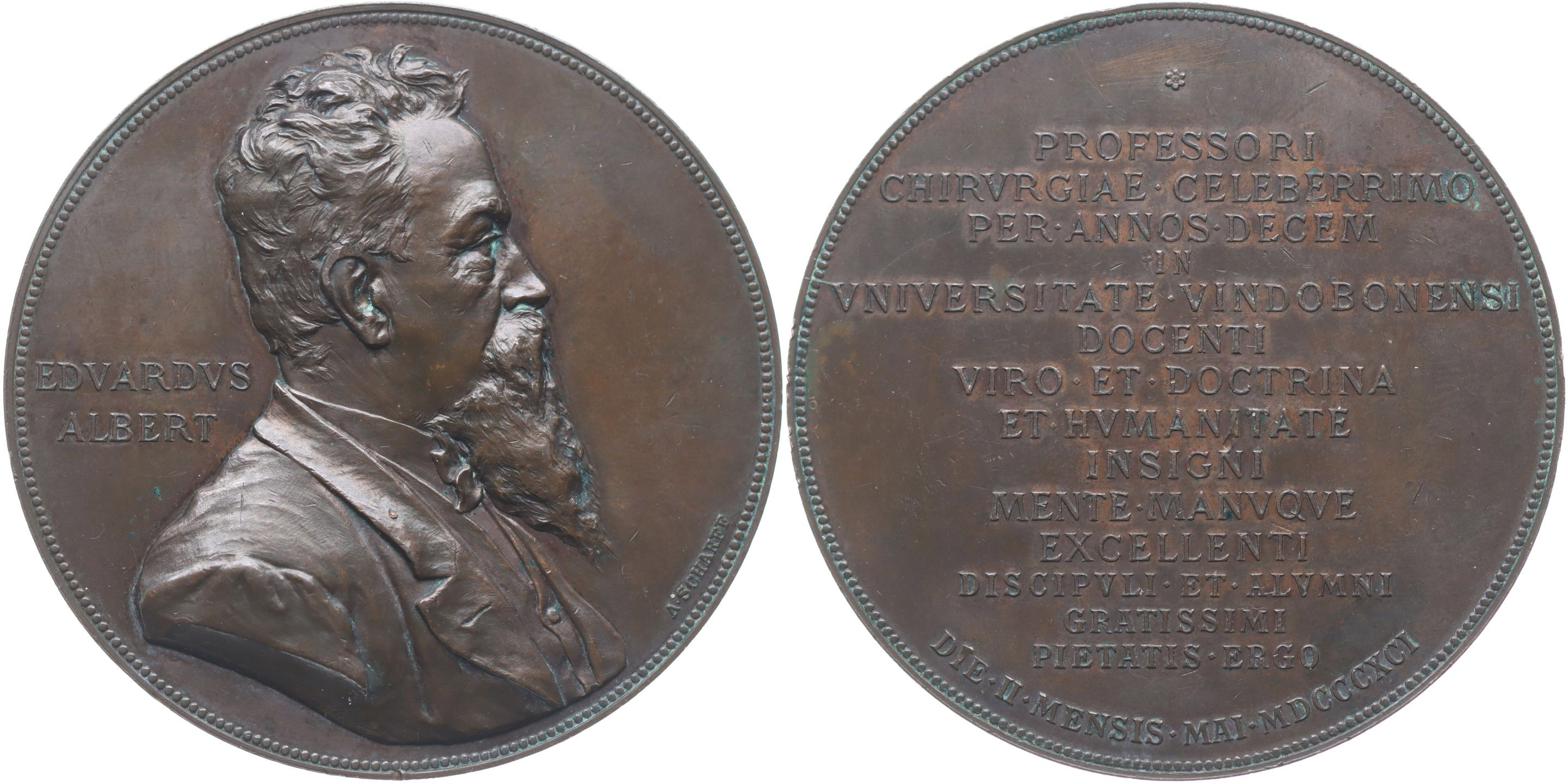 MUDr.Eduard Albert - profesor vídeň.university, 1891 Poprsí zprava, nápis / 15řádkový nápis, Sign., Bronz 63 mm